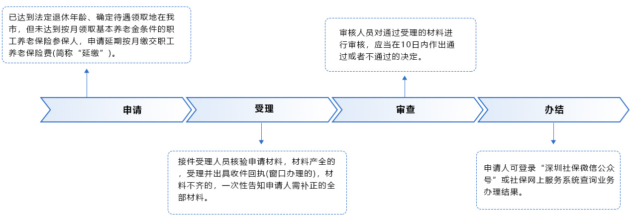 若以个人身份办理养老延缴,可同时办理职工医保退休(缴费年限认定)业务。 办理路径:“深圳医保”微信公众号—医保网办—掌上办事—参保管理—医保退休—职工医保退休(缴费年限认定)。 |