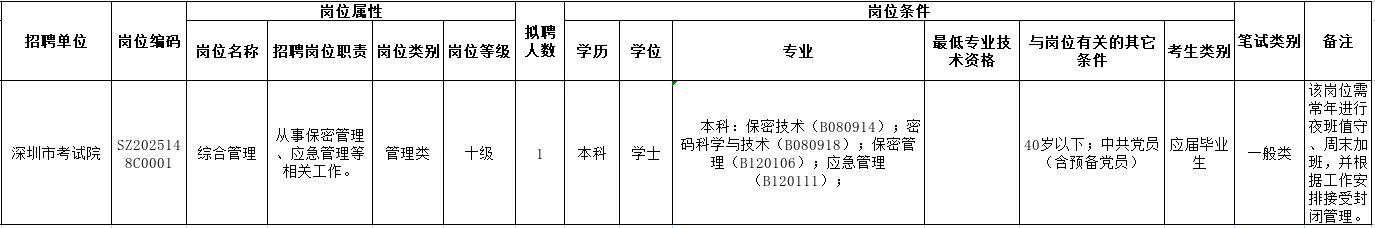 深圳市事业单位2026年集中公开招聘高校毕业生公告已发布(https://hrss.sz.gov.cn/gzryzk/content/post_12516345.html),我院有1个岗位,欢迎符合条件的应届毕业生报考!获聘人员为事业单位编制人员,享受国家、省、市政策规定的薪酬待遇。